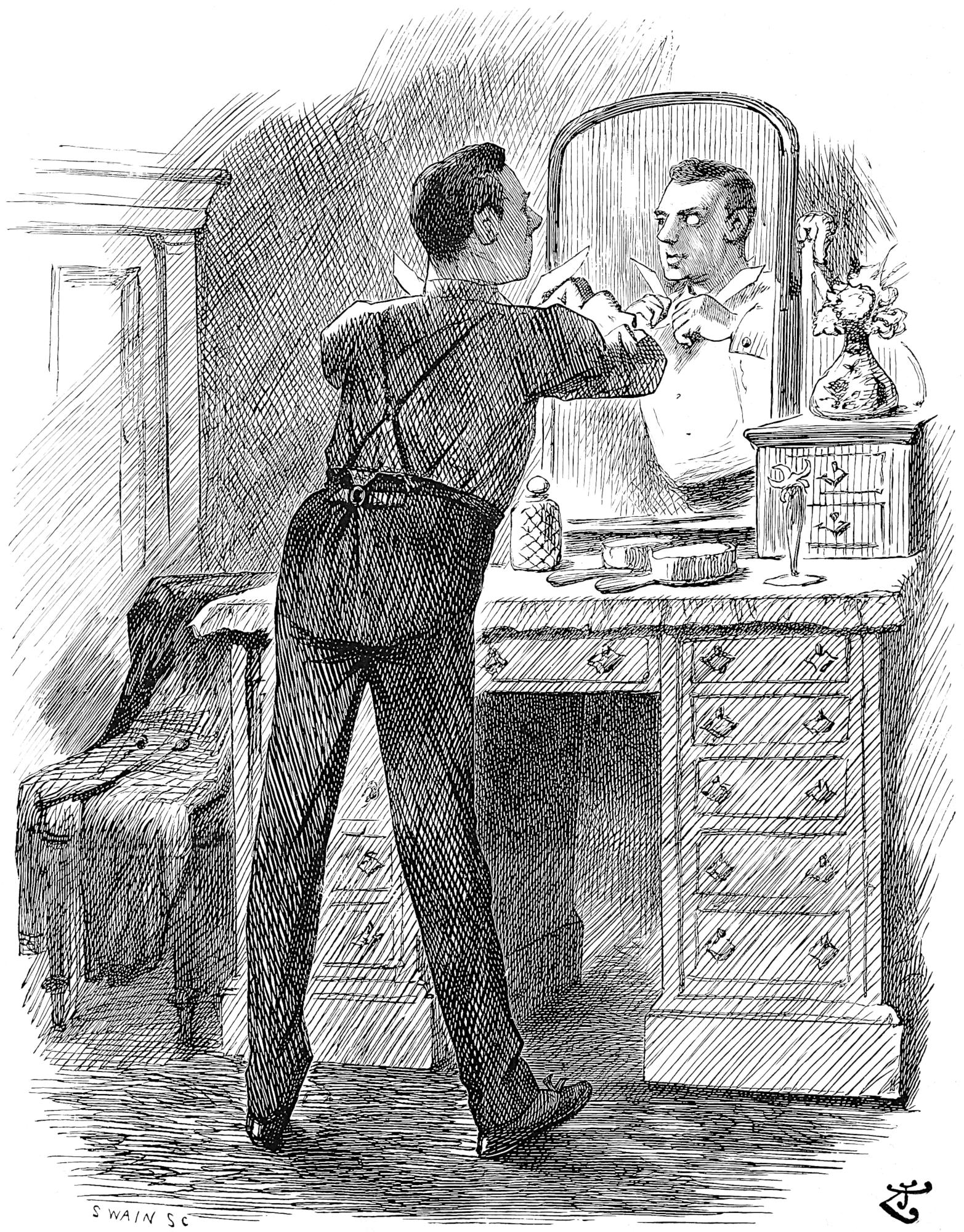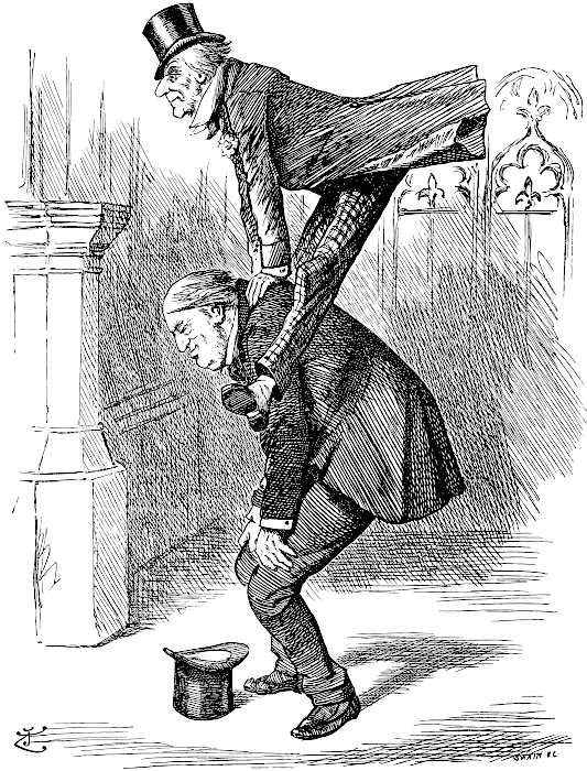 Mr. Joe Chamberlain (to himself). “‘In short, Gentlemen—if you are only true to your principles, any one of you may become—as I have done—a Minister in a Liber—I should say in a Conserv—I beg pardon—I should say in an Unionist Government.’ H’m rather confusing—I don’t think that’ll quite do!”