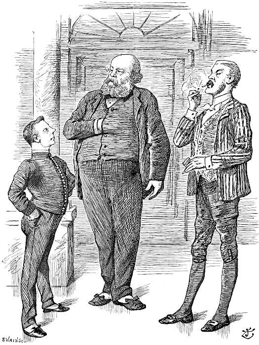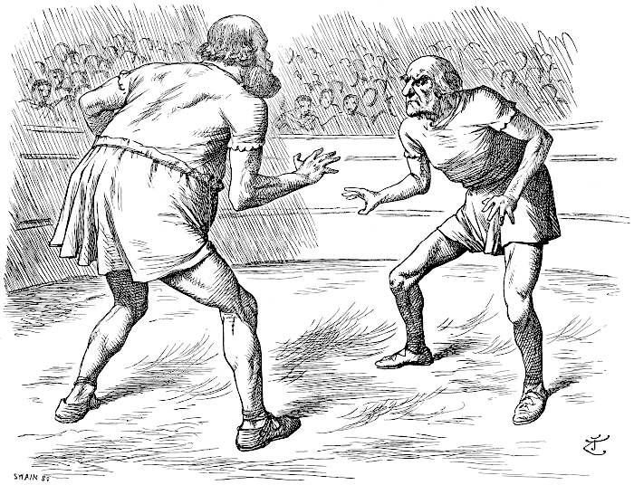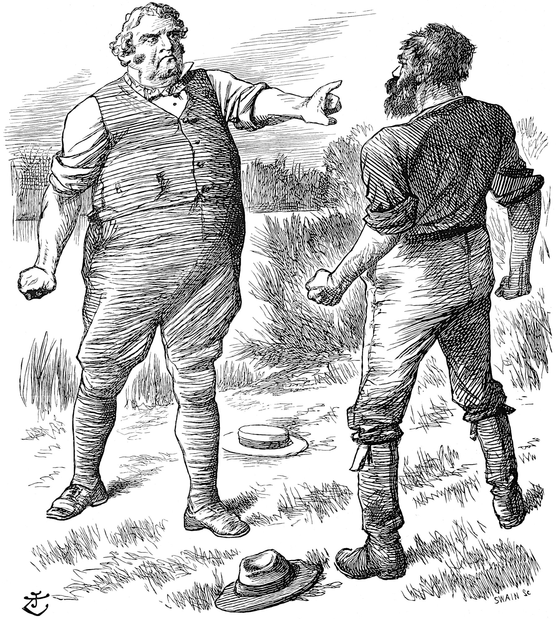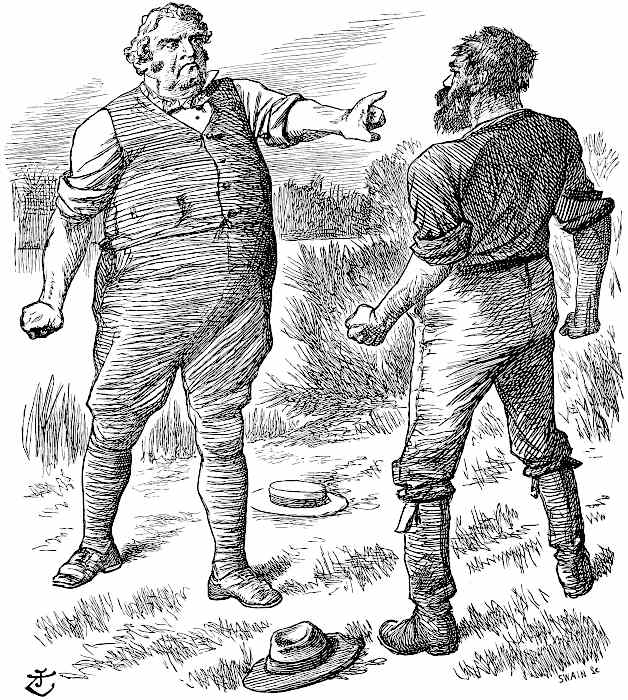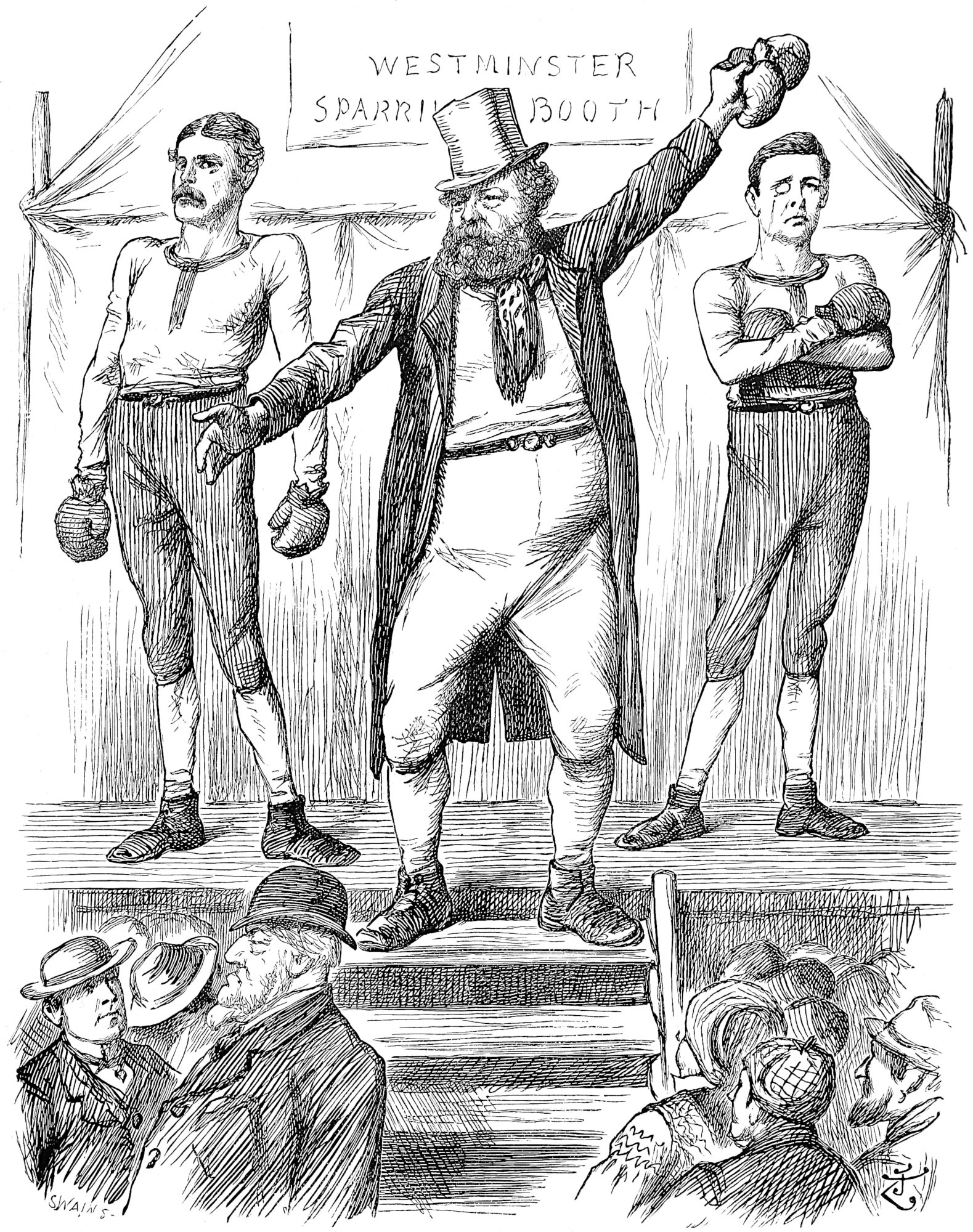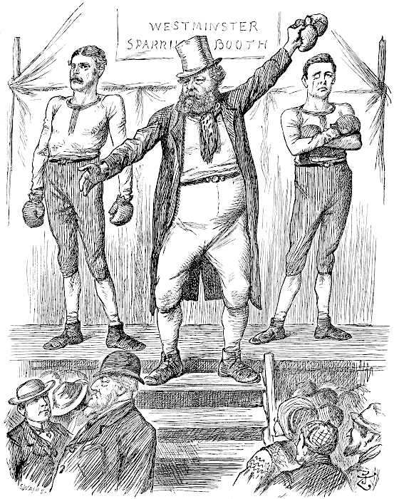 Professor Salisbury (P.P.R.). “Now, my Sportin’ Gents, ’ere’s the ‘Atfield Pet and the Brummagem Bruiser—Who’ll have ’em on with either of ’em?”