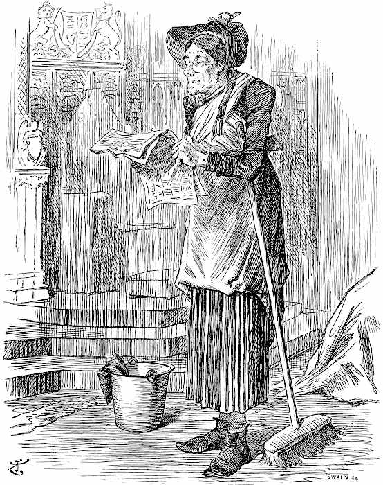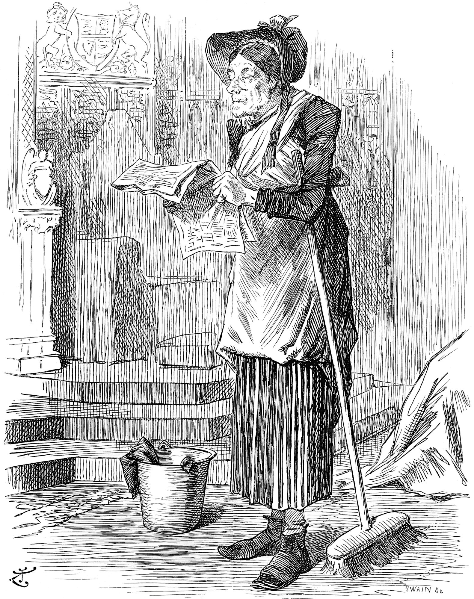 House of Lords Charwoman. “Well! them Rogeberries, and ’Erbert Gladstings, and Haskwidges, and the rest on ’em may tork—and they may tork—but they h’aint turned hus out yet!!”