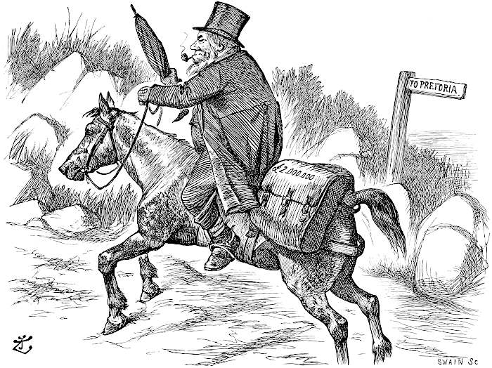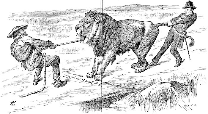 President Kruger (reading the Chancellor of the Exchequer’s speech on the Budget debate):—“I am not going to bind myself as to what I will do on the termination of the War. I look first to the Transvaal.”