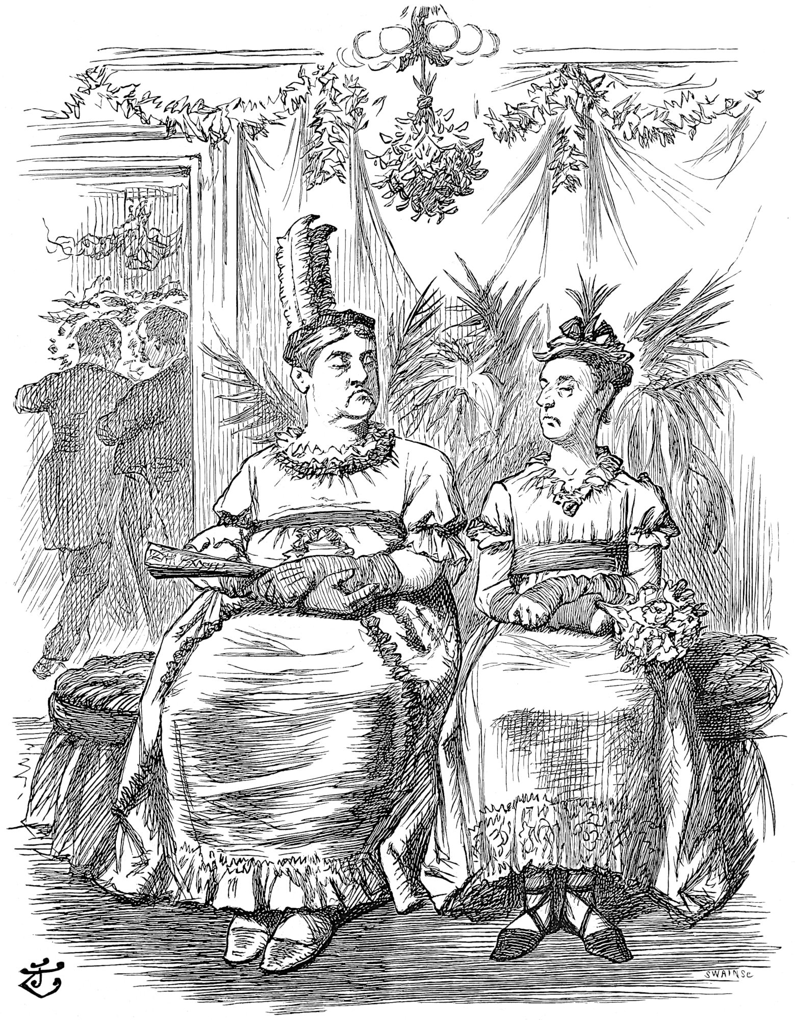 Miss Wilhelmina Harcourt (to Miss Joanna Morley). “Really, my dear, I don’t think it seems much use our staying here any longer.... They won’t come!”