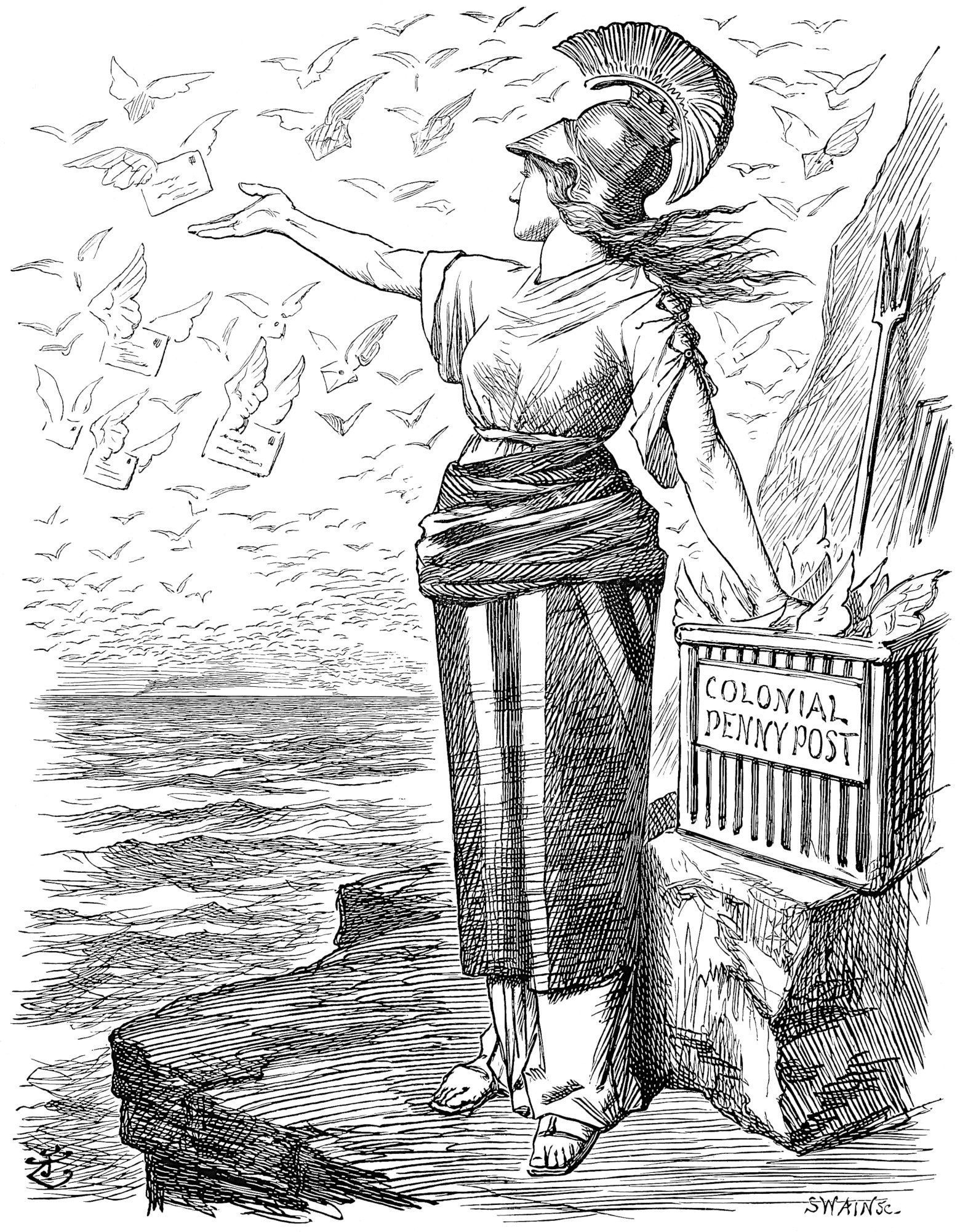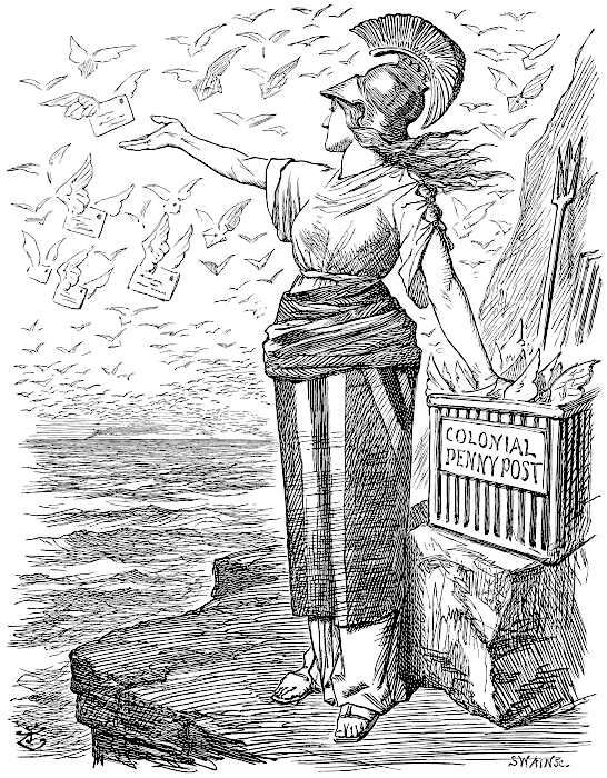 | Thanks to Mr. Henneker Heaton, some of the Colonies had accepted the principle of an International Penny Postage. | |
