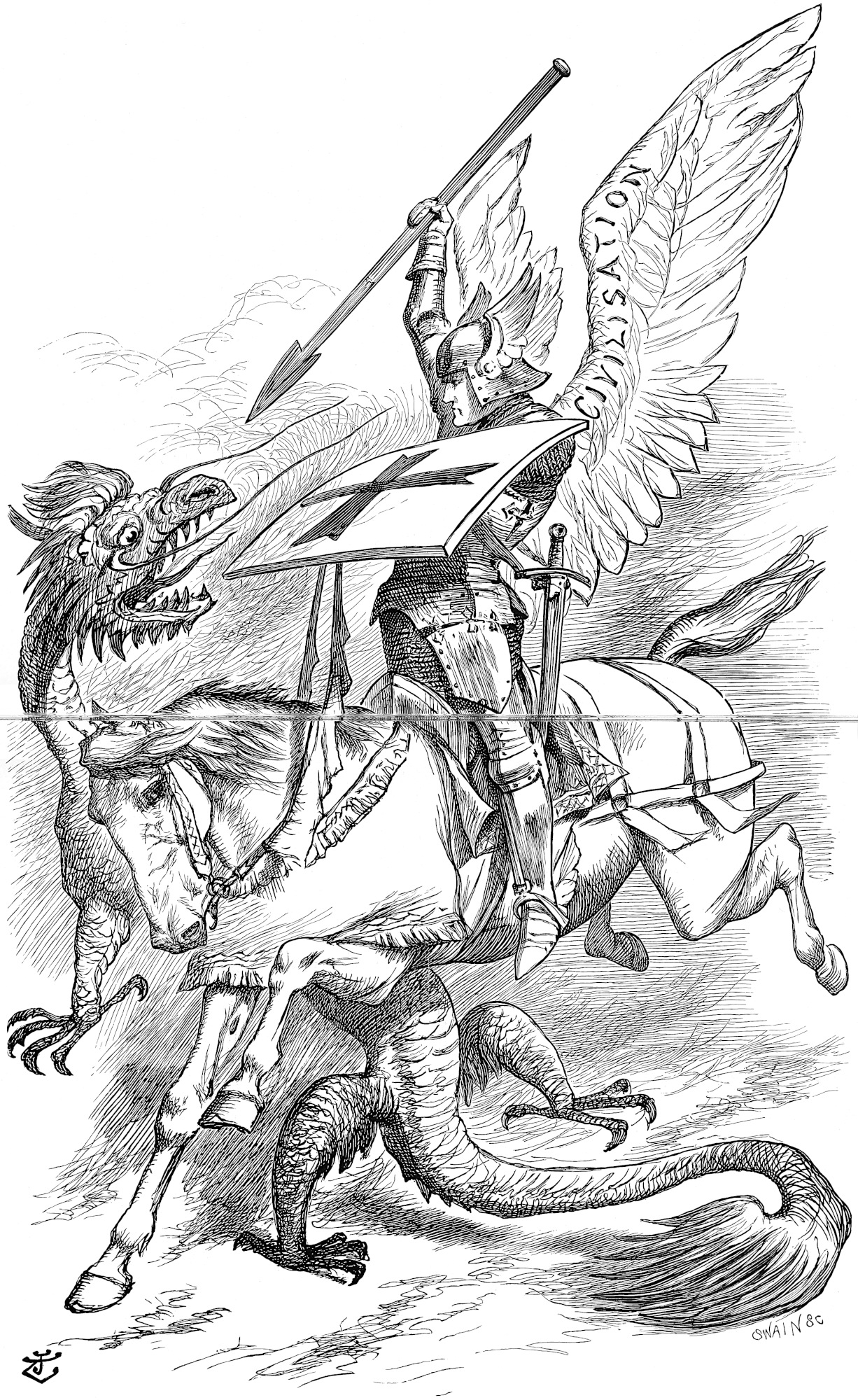 THE present collection of Sir John Tenniel’s Cartoons is intended to be a selection comprising the more memorable of those which have appeared in “Punch” during the last 50 years. The first in the collection bears the date of 1851, and the last is Sir John Tenniel’s final Cartoon in January, 1901. Short explanatory notes have been provided, but as most of them will, perhaps, be unnecessary to those to whom the Cartoons themselves are familiar, they have been grouped together and combined with the Table of Contents at the commencement of the volume, where they can readily be referred to.