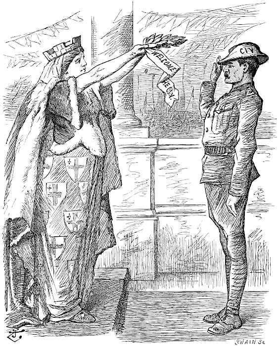 | The City of London Imperial Volunteers met with an enthusiastic reception in the City and elsewhere on their return from South Africa. | |