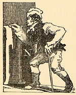 In the year 1566, Thomas Harman, Esq., probably a justice of peace, published a very singular and amusing work, entitled, "A Caveat, or Warning for Common Cursetors (runners) vulgarely called Vagabones;" in which he has described the several sorts of thieving beggars and other rogues with considerable humour, and has collected together a great number of words belonging to what he humorously calls the "leud lousey language of these lewtering luskes and lazy lorrels, wherewith they bye and sell the common people as they pas through the countrey." He says they term this language Pedlar's French, or, Canting, which had not then been invented above thirty years. As the book has lately been reprinted, it will be proper, on this occasion, to use it more sparingly, and to mention only such of Harman's vagabonds as fall under the begging class. These are 1. The Rufflers; particularly mentioned in the Stat. xxvii. Henry VIII. against vagabonds, as fellows pretending to be wounded soldiers. These, says Harman, after a year or two's practice, unless they be prevented by twined hemp, become,—2. Upright Men; still pretending to have served in the wars, and offering, though never intending, to work for their living. They decline receiving meat or drink, and take nothing but money by way of charity, but contrive to steal pigs and poultry at night, chiefly plundering the farmers. Of late, says the author, they have been much whipped at fairs. They attack and rob other beggars that do not belong to their own fraternity, occasionally admitting or installing them into it by pouring a quart of liquor on their pates, with these words, "I do stall thee, W. T., to the rogue, and that from henceforth it shall be lawful for thee to cant for thy living in all places." All sorts of beggars are obedient to them, and they surpass all the rest in pilfering and stealing. 3. Hookers, or Anglers; these knaves beg by day, and pilfer at night, by means of a pole with a hook at the end, with which they lay hold of linen, or any thing hanging from windows or elsewhere. The author relates a curious feat of dexterity practised by one of them at a farm house, where, in the dead of the night, he contrived to hook off the bed-clothes from three men who were lying asleep, leaving them in their shirts, and when they awoke from cold, supposing, to use the author's words, "that Robin Goodfellow had bene with them that night." 4. Rogues; going about with a white handkerchief tied round the head, and pretending to be lame. These people committed various other frauds and impostures, in order to obtain charity. 5. Pallyards; with patched garments, collecting, by way of alms, provisions, or whatever they could get, which they sold for ready money; they are chiefly Welshmen, and make artificial sores by applying spearwort to raise blisters on their bodies, or else arsenic or ratsbane to create incurable wounds. 6. Abraham Men; pretending to be lunatics, who have been a long time confined in Bedlam or some other prison, where they have been unmercifully used with blows, &c. They beg money or provisions at farmers' houses, or bully them by fierce looks or menaces. 7. Traters; or fellows travelling about {13} the country with black boxes at the girdle, containing forged briefs, or licences to beg for hospitals. Some have clouts bound round their legs, and walk as if lame, with staves in their hands. 8. Freshwater Mariners, or Whipjacks; whose ships, says the witty author, were drowned in Salisbury Plain. These counterfeit great losses at sea by shipwreck and piracy, and are chiefly Irishmen, begging with false licences, under the supposed seal of the Admiralty, so artfully constructed as to deceive even the best lawyers. 9. The Counterfeit Crank; who is described at large, with a figure, in another part of this work. 10. Dommerars; chiefly Welshmen, pretending to be dumb, and forcibly keeping down their tongues doubled, groaning for charity, and keeping up their hands most piteously, by which means they procure considerable gains. 11. Demanders for glymmar; who are chiefly women that go about with false licences to beg, as sufferers from fire,—glymmar, in pedlars' language, signifying that element. Many other classes are enumerated in this curious volume, as—priggars of prauncers, swadders, jarkman, patricos, bawdy baskets, autem morts, walking morts, doxies, dells, kynchin morts, and kynchin coes; but all these are rather pilferers than beggars.