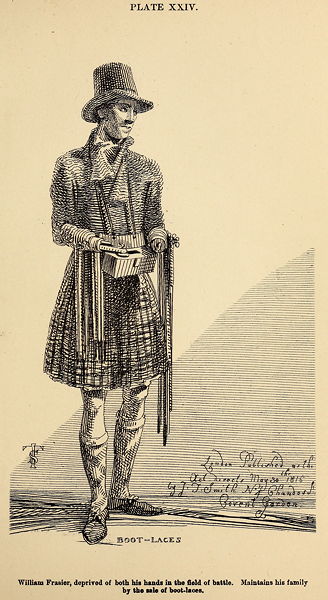William Frasier, deprived of both his hands in the field of battle. Maintains his family by the sale of boot-laces.