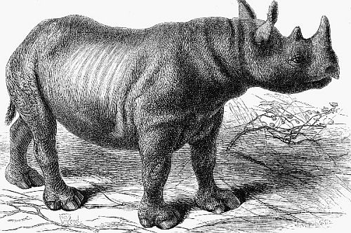 Mr. Tegetmeier has sufficiently described in the "Field" journal the African Rhinoceros just received [Pg 28] at the Zoological Society's menagerie in the Regent's-park, and which has been sketched by Mr. T. W. Wood expressly for the present volume.