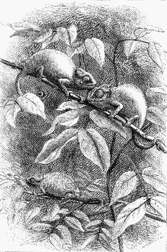 The Chameleon described by Aristotle and Calmet, 307, 308.—Change of Colour, 309.—Reproduction of, 310, 311.—Tongue, 311.—Lives in Trees, 312.—Theory of Colours, 313.—The Puzzle Solved, 315.—Mrs. Belzoni's Chameleons, 317.—Lady Cust's Chameleons, 321.—Chameleon's Antipathy to Black, 322.