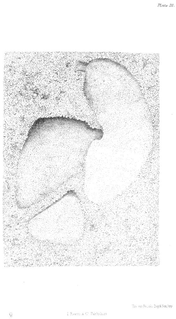 Plate III., p. 23.—The floors of three granaries of Atta barbara, surrounded by the much coarser gravelly earth, of the natural size.