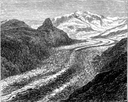 The great Aletsch and its neighbours exhibit similar evidences of diminution. I found moreover this year that the two ancient moraines mentioned in paragraph 364 are parts of the same great lateral moraine which flanked the glacier for a long period, during which its magnitude must have remained practically constant. The place occupied by the ancient ice-river is rendered strikingly conspicuous by this well-preserved boundary.