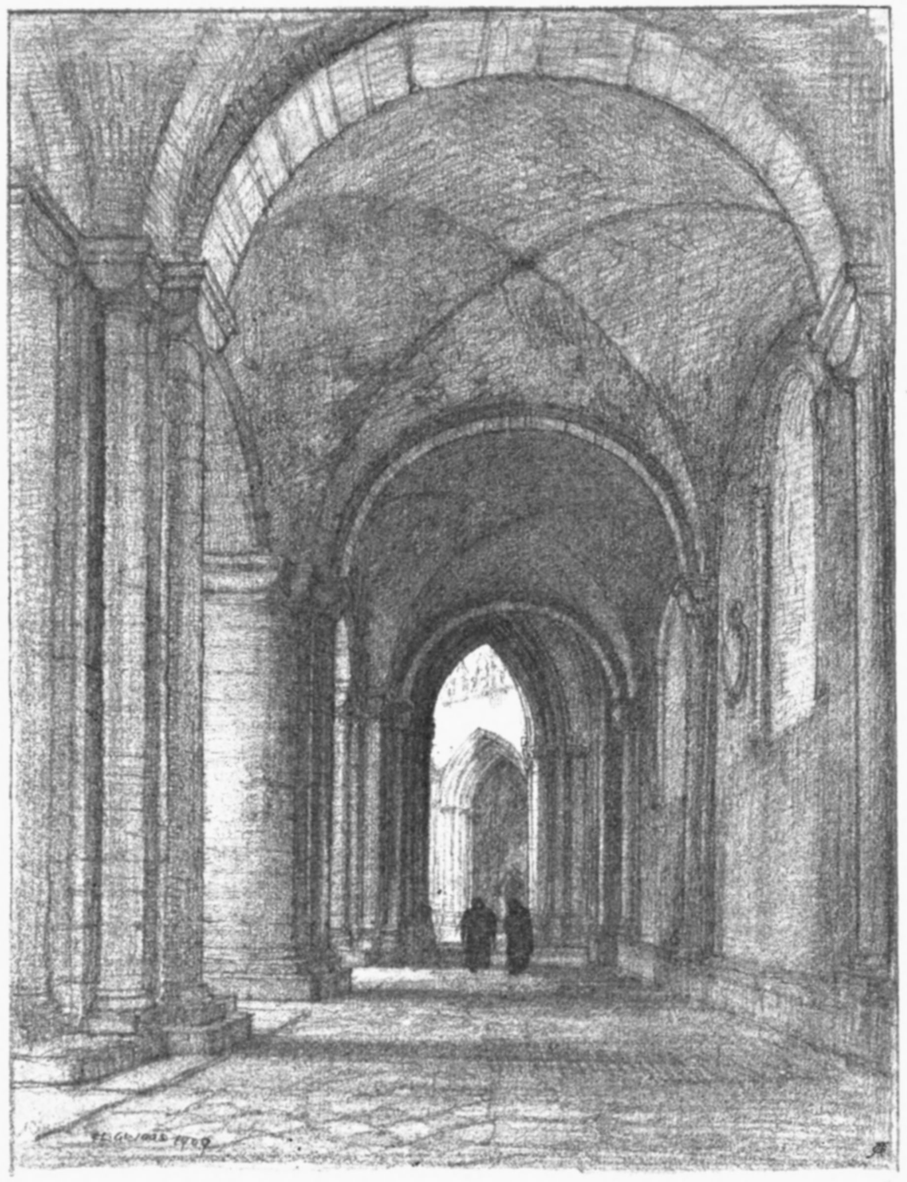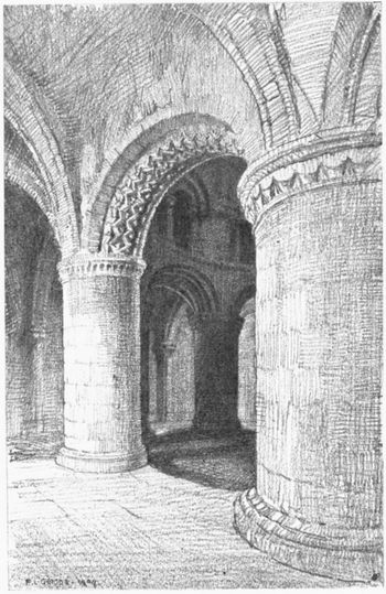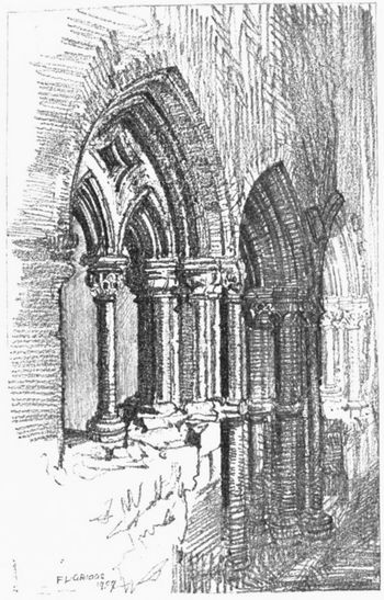 225: This was the average length in the larger abbeys, notably surpassed only by the splendid dimensions of Glastonbury, where the cloisters were a square of 221 feet on each side.