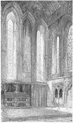 Approach to Ely. — The Park. — Walpole Gate. — Crauden Chapel. — Western Tower, Galilee. — Nave. — Baptistery. — Roof. — Prior's Door. — Cloisters. — Owen's Cross. — Octagon. — Alan's Grave. — Transepts. — St. Edmund's Chapel. — Choir Stalls. — Presbytery. — Norman Piers. — Reredos. — Candlesticks 344