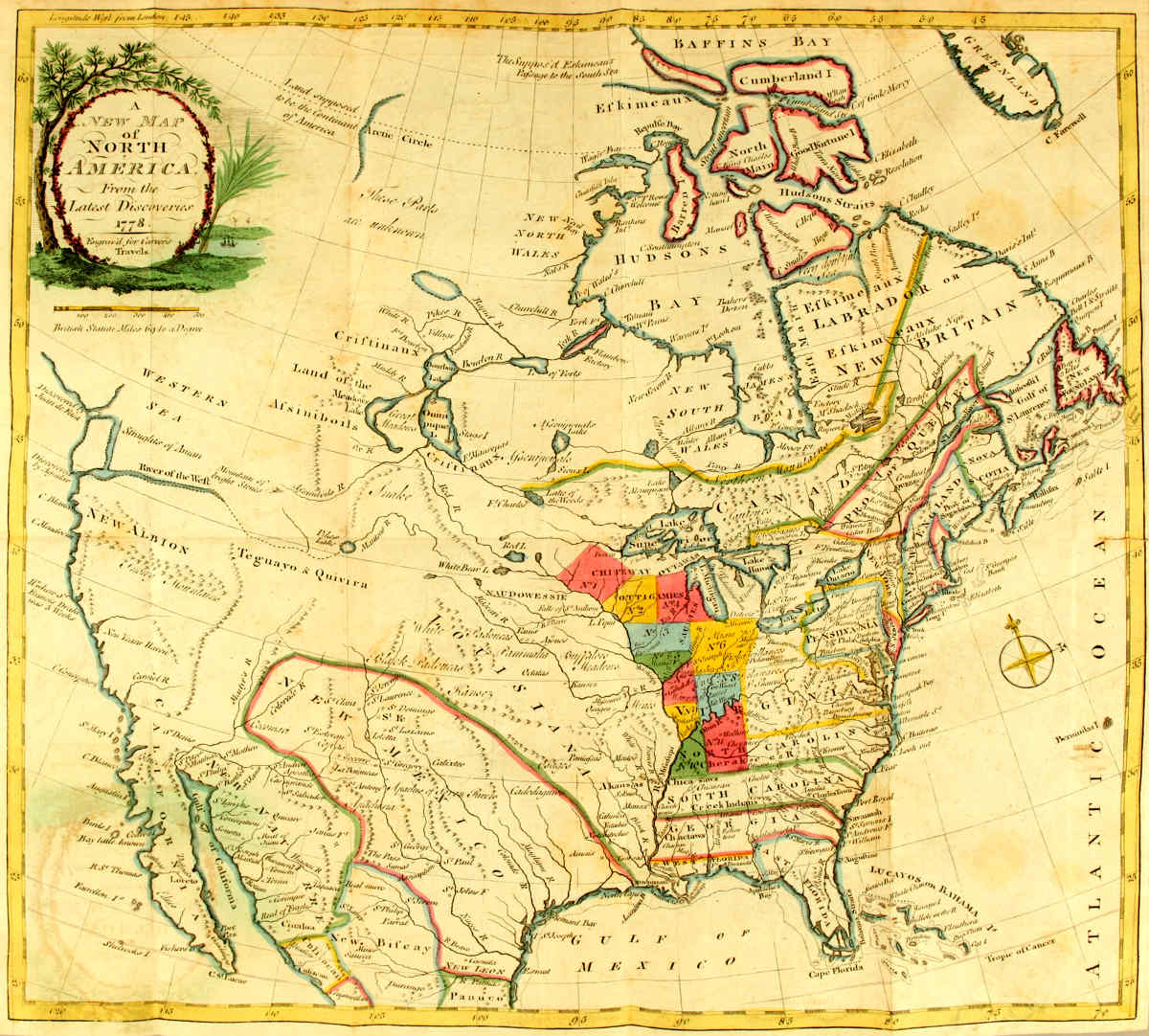 Few objects have excited a more general enquiry than the discovery of a north-west passage, in order to open a communication with the great pacific ocean and the East Indies, by a shorter navigation than by doubling those immense promontories, the Cape of Good Hope or Cape Horn. Every allurement of gain, and national emolument, has been proposed to encourage the attempt, but, hitherto, every attempt hath been fruitless, though the most experienced seamen have engaged in the undertaking. Our traveller suggested an attempt by land, across the north west parts of North America, and actually drew a chart of his proposed route for effecting his project, which, however visionary it may now be deemed, affords at least a proof of the enterprizing spirit of Captain Carver, and which he would, probably, have attempted, had any encouragement been afforded him: (introd. pag. 6. and append. pag. 539, et seq.)