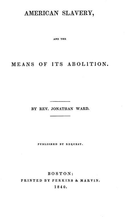 More than forty years ago the writer of the following pages read Wilberforce’s publications on the slave trade, in which were described the various methods of procuring the slaves in Africa, the horrors of the “middle passage,” and their cruel treatment in the West Indies. In perusing these statements of that great philanthropist and friend of the injured African race, his feelings became, in some measure, enlisted in favor of the colored people of our land, and in opposition to the slavery upheld by our nation.