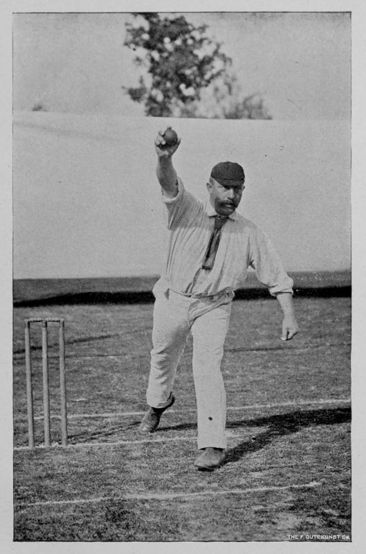 THE BOWLER IN THE ACT OF DELIVERING.