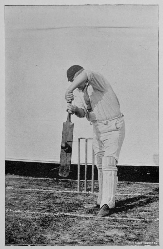 The object of the bowler should be either to bowl the wicket; to have a batter give a chance for a catch; or, to force the batter to leave his ground for a stump. Unless he can vary his intention to thwart the batsman by the delivery of unexpected and difficult balls, he cannot expect to rank among the best, nor will he be called a head bowler. The only ball which the bowler can depend upon for uniform good results, strikes the turf outside the reach of the batter. Good batsmen safely block or hit any ball falling within six feet of the crease, some reach a ball which drops eight feet or more from the crease. But every batsman has a limit when the wicket keeper is in place. That spot, a little nearer the bowler than this limit is known as the “pitch” or “length.” The bowler must direct his efforts to gauge the batter’s reach, and deliver balls which will prevent scoring. When a bowler discerns the “length” ball a batsman cannot play, and his skill enables him to deliver it at will, he may be relied upon. It is the eager hope of every beginner to become a superior bowler. We have endeavored to indicate just what a good ball is and wherein it differs from one which the batter fancies. But this is not enough; the mind of the young bowler must solve the problem, and must have a well defined conception of the ball which is expected to baffle the batter. Having reached a satisfactory conclusion upon this all important subject, the physical effort to execute his theories must now be regularly practiced until he has mastered the art.