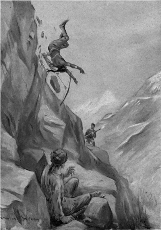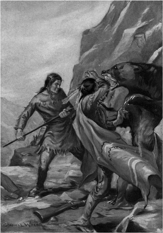 He sent an arrow slithering at a bulky figure dimly outlined not more than ten yards away. At so short a distance a Sioux could shoot an arrow with tremendous force, and there followed at once a roar of pain, a rush of heavy feet, and a wild threshing among the bushes.