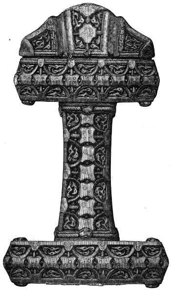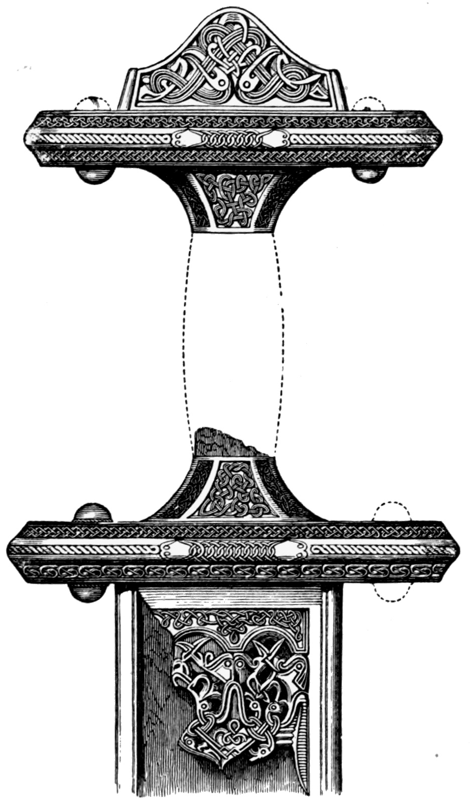 | Modified types of the intruded Paganism of the northern area—Burials with urns of steatite in Orkney and Shetland—Their relation to Norwegian burials in the Pagan Period of the Viking time—Deposits of objects not associated with burials—Hoard of silver ornaments found at Skaill, Orkney—Dated by Kufic and Anglo-Saxon coins found in it—Typical characteristics of its brooches—Special features of their ornament—Characteristics of its neck and arm rings—Difference in character from the Norries Law hoard—No other hoard of similar character found in Scotland—Similar hoards found in Norway, Sweden, and Denmark—Character of the objects found in them—Question of their Oriental origin—The hoard of silver ornaments found at Cuerdale—Character of its brooches—Some of them distinctively Celtic—Determination of the typical relations of the Skaill brooches—Their form Celtic—Their art partly Celtic and partly Scandinavian—Its affinities with the art of the Scandinavian Pagan times—A figure like that of the god Thor represented on one of the Skaill brooches—Thor’s hammer—Thor’s face as represented on monuments—The mixed art of these brooches implies a mixed race—They are probably products of the area in which they were found—Dress of the period—Hood found in a moss in Orkney—Relations of the neck and arm rings of silver to ornaments in gold found in Orkney and the Western Isles—Their special forms and ornamentation are peculiar to the area of the Scandinavian colonies in Scotland | Pages 66–111 |