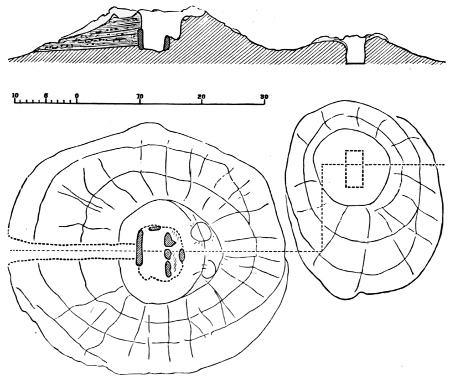99. Such constructions are frequently found in similar juxtaposition to the walls of these forts, and rightly or wrongly they have been regarded as cattle-folds.
