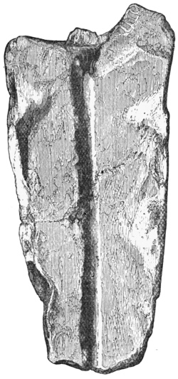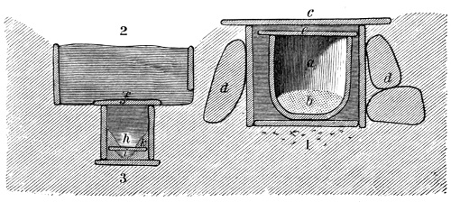 106. The late Mr. Ramsay, Director of the Geological Survey, records a circumstance which has an obvious bearing on the question of the possibility of such vitrifaction. Near Barnsley, in Yorkshire, the country affords no good material for road-metal the sandstones made from the debris of granitic gneiss pounding up rapidly under cart-wheels. "To obviate this defect the following process is adopted:—The stone being quarried in small slabs and fragments is built in a pile about 30 feet square and 12 or 14 feet high, somewhat loosely; and while the building is in progress brushwood is mingled with the stones, but not in any great quantity. Two thin layers of coal about 3 inches thick, at equal distances, are interstratified with the sandstones, and a third layer is strewn over the top. At the bottom, facing the prevalent wind, an opening about 2 feet high is left, something like the mouth of an oven. Into this brushwood and a little coal is put and lighted. The fire slowly spreads through the whole pile and continues burning for about six weeks. After cooling, the stack is pulled down, and the stones are found to be vitrified. I examined them carefully. Slabs originally flat had become bent and contorted, and stones originally separate glazed together in the process of vitrifaction."—Proc. Soc. Antiq. Scot., vol. viii. p. 150.