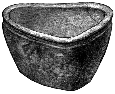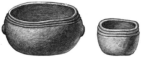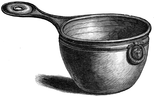 94. This special form of saucepan with curved sides and flat bottom, concentrically moulded on the outside, is found in most collections of antiquities obtained from sites of Roman occupation. In the Museo Borbonico, at Naples, there are about 200 examples, mostly of this type.