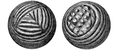71. Dr. John Alexander Smith has discussed this point fully in his exhaustive notice of these Stone Balls in Proc. Soc. Antiq. Scot., pp. 56-62. Dr. John Evans remarks that “it seems probable that they were intended for use in the chase or in war when attached to a thong which the recesses between the projecting discs seem well adapted to receive.” He also states that "these Scottish Stone Balls seem to belong to a recent period, as compared with that to which many other stone antiquities may be assigned."—Ancient Stone Implements, etc., of Great Britain, pp. 377-379.