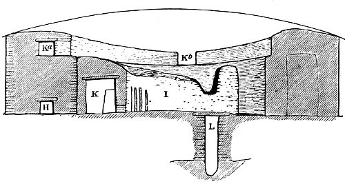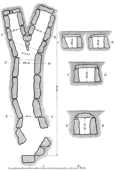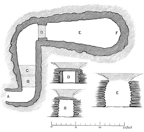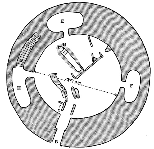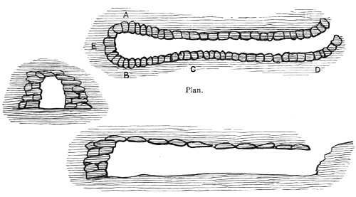 118. These details are taken from a paper by William Borlase, Esq., in the Proceedings of the Society of Antiquaries of London, 1868 (Second Series, vol. iv. p. 161), where a ground plan and sections, with woodcuts of the structural appearance of the building are given. Mr. Borlase mentions other structures of the same class at Pendeen, Bolleit, Chysoster, and Bodinar.