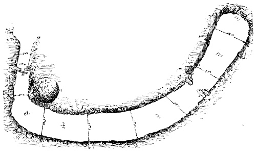 104. Proc. Soc. Antiq. Scot., vol. iv. p. 350. A section and elevation of the rampart showing the oak-beams in position are given in Plate IX. of the same volume.