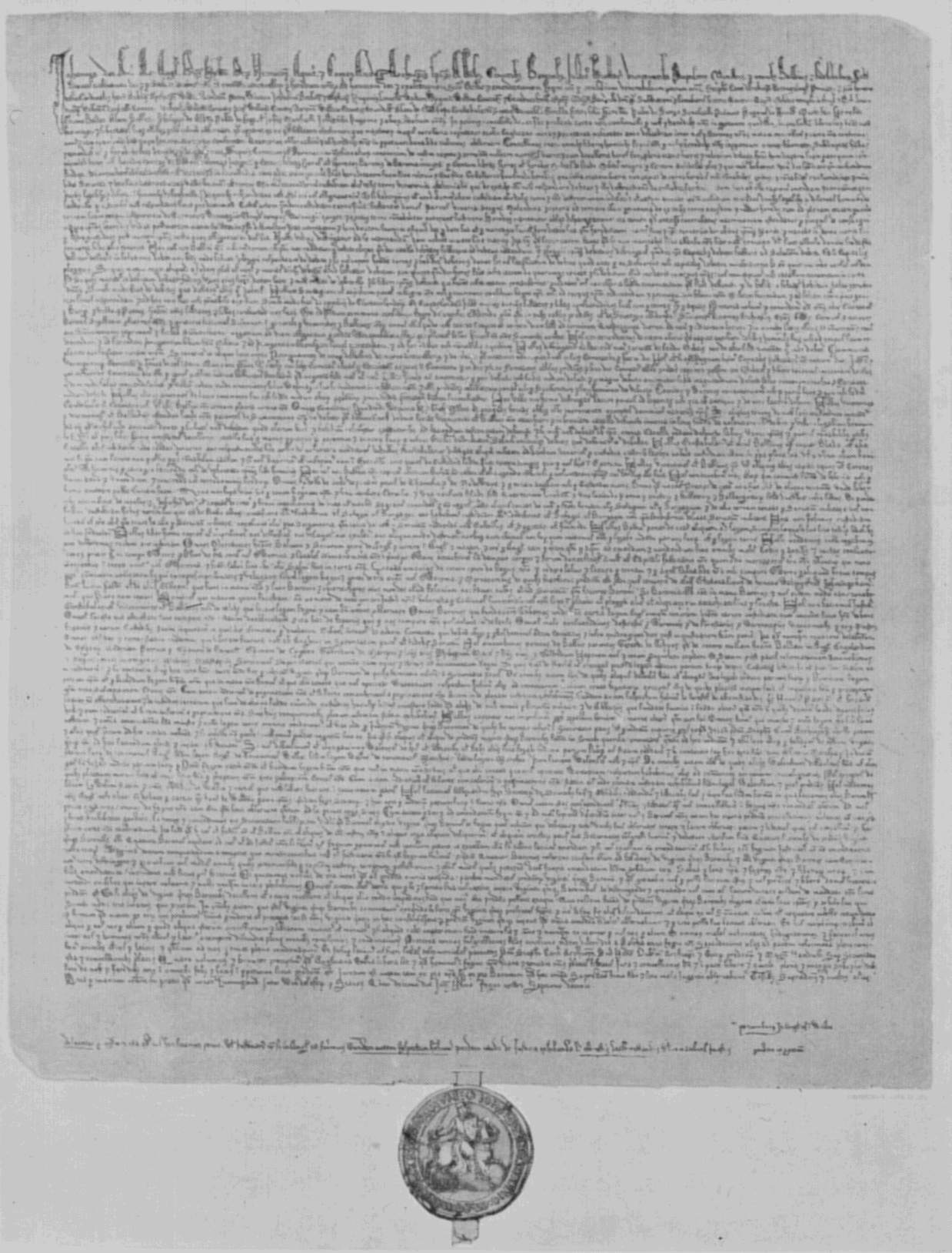 Then in March, 1093 came the King's sickness, which most men expected to be mortal. Anselm was summoned, and on his arrival bade the King "make a clean confession of all that he knows that he has done against God, and promise that, should he recover, he will without pretence amend in all things. The King at once agreed to this, and with sorrow of heart engaged to do all that Anselm required and to keep justice and mercy all his life long. To this he pledged his faith, and made his bishops witness between himself and God, sending persons in his stead to promise his word to God on the altar. An edict was written and sealed with the King's seal that all prisoners should be set free in all his dominions, all debts forgiven, all offences heretofore committed pardoned and forgotten for ever. Further, good and holy laws were promised to the whole people, and the sacred upholding of right and such solemn inquest into wrongdoing as may deter others."[3]
