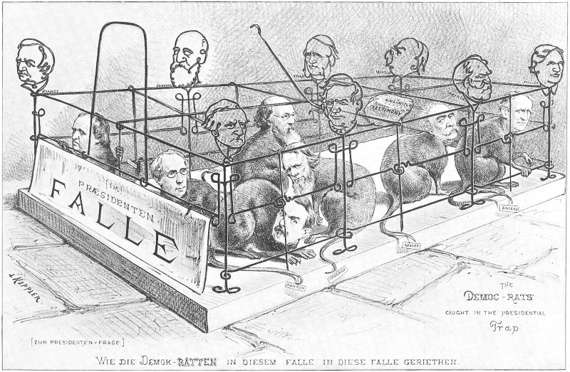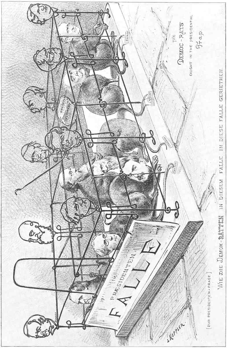 6 The idea of this cartoon is not free from guilty obligation to a small pun; yet it depicts the situation of the Democratic Party in the last months of 1876 with considerable aptitude and force. It appeared at the time when the Democrats in Congress had been hoodwinked into accepting the Electoral Commission scheme, which deprived Mr. Tilden of the Presidency, and put Mr. Hayes in the chair. Under these circumstances, it was certainly truthful, even if it was trite, to say that the “Democ-Rats” were caught in the political trap.