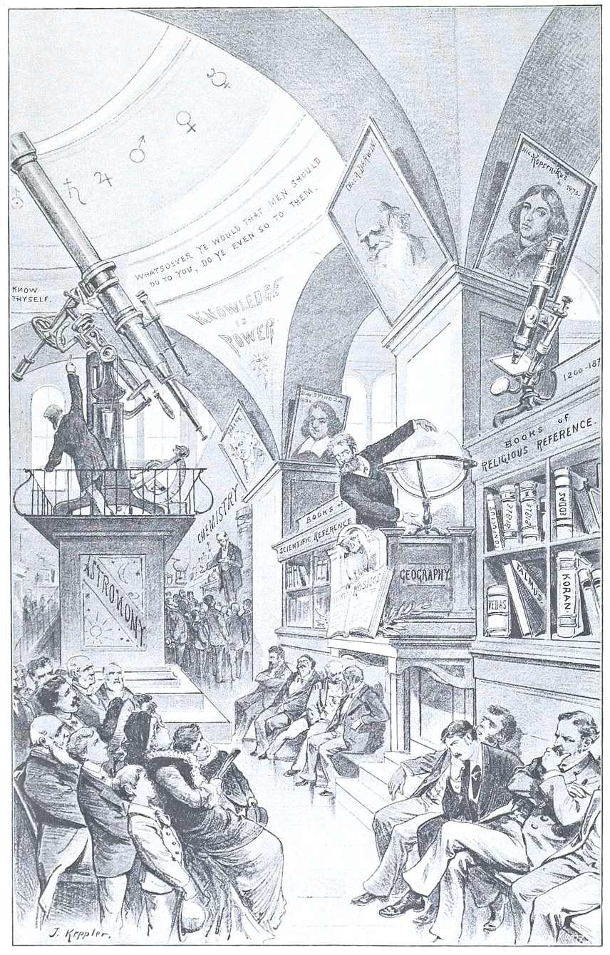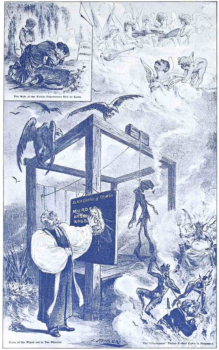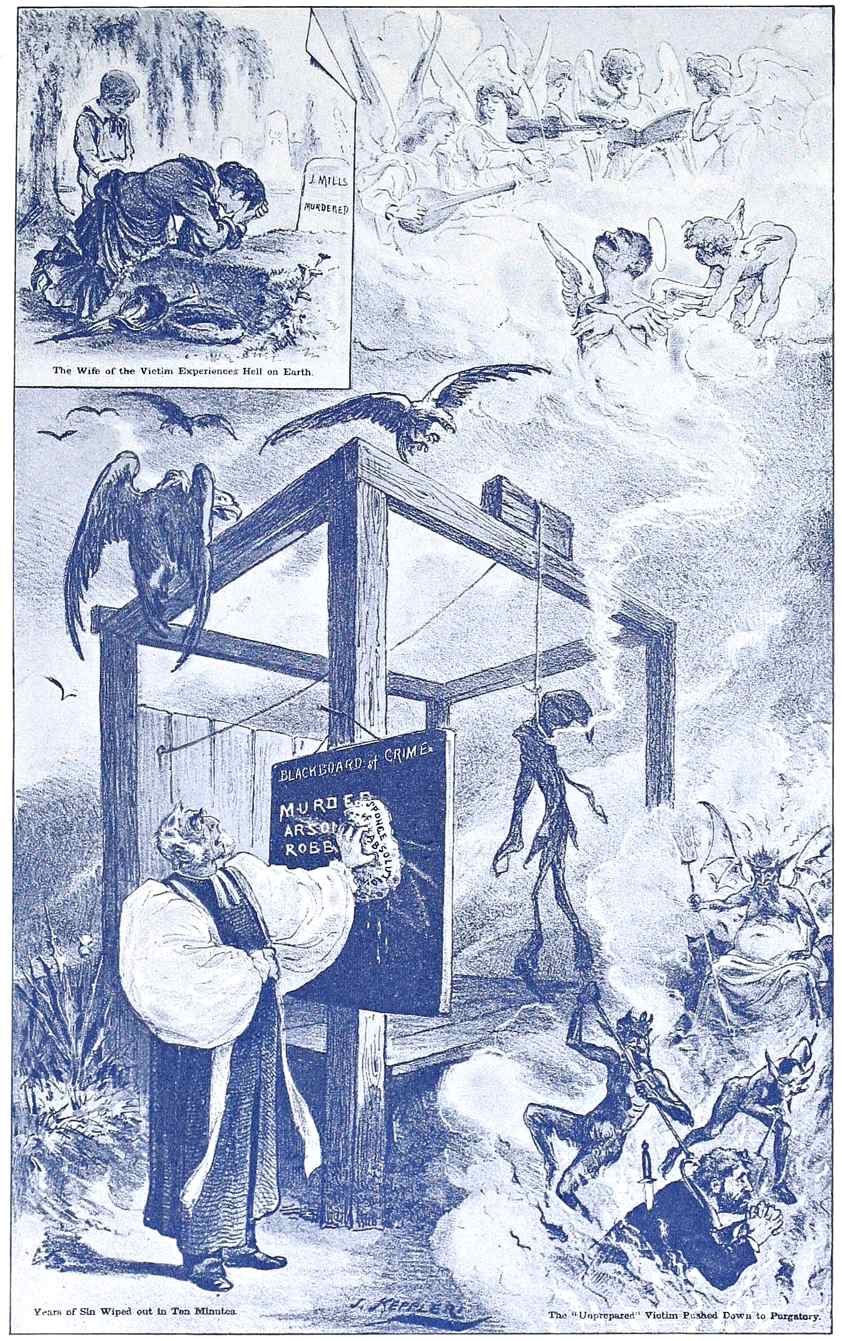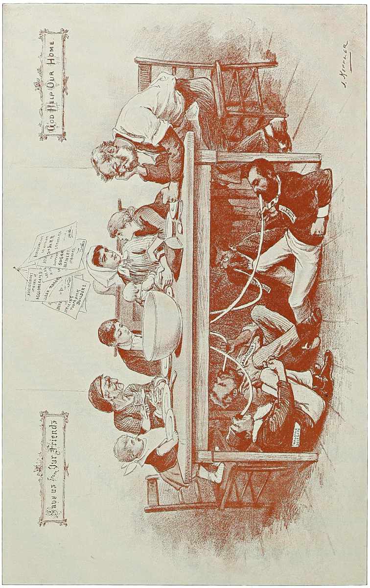 34 The times change, and we change with them. When this cartoon was designed, the popular theological fad was the harmonization of science and religion, and the immediate cause of its appearance was some utterance, now forgotten, but at the time considered highly audacious, of the Reverend Heber Newton. It was, we believe, the introduction of the practice of “slumming” which changed the current of clerical taste.