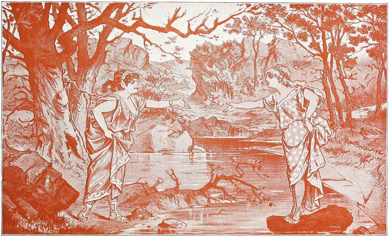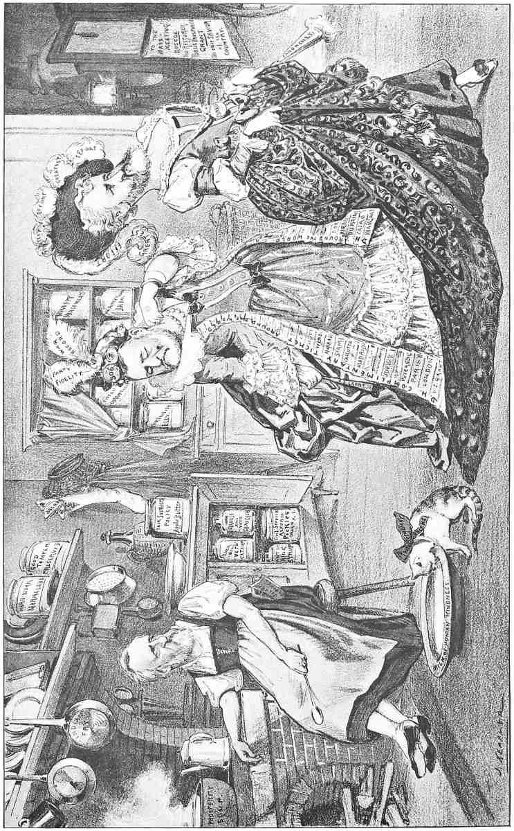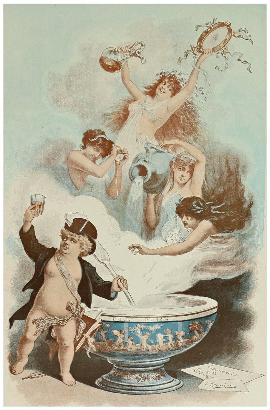 222 The necessary ingredients of a Christmas punch are typified in this cartoon by four female forms. The verses that accompanied it in the Christmas Puck for 1888 were as follows: