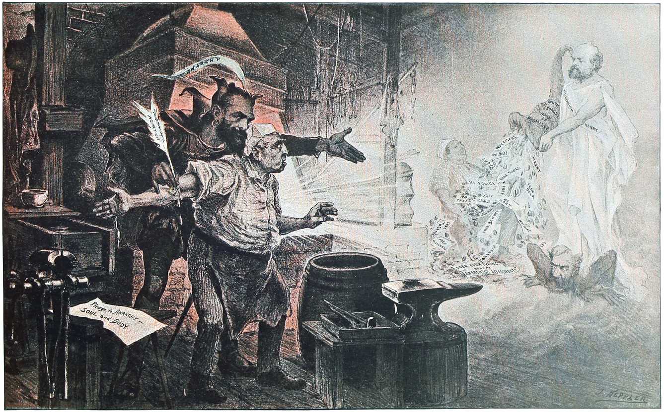 It was not in the American nature to refuse to recognize the pregnant possibilities of such a school of satiric art. Nor did Mr. Keppler fail to grasp the vast possibilities opened to him by the freedom of American laws and American tradition—social and political.