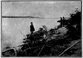 The tundra is curiously marked off in many places by ridges and ditches running at right angles to one another. The ditches are full of water, and the tundra resembles a California alfalfa field laid off in squares by irrigating ditches. I cannot think of a cause for this formation. The numerous lakes and ponds are many of them higher than the surrounding land, and are hemmed in by dykes three or four feet high. These are thrown up by the floes of ice in the lakes which, decreasing in size as the summer advances, are driven back and forth across the lakes by changing winds, and thus crowd up the mud and sod around the edges. The dryer parts of the tundra are covered with the white reindeer moss, really a lichen, and under and among this a thick mat of sphagnum and other mosses. This is soaked full of water, and it is like walking over a bed of sponges, where one "sloshes" in five or six inches at every step, to travel over such ground. Then on lower ground a sort of bunch grass grows in big, stout tussocks, "nigger heads," with water and loose moss between. This last is the worst walking.