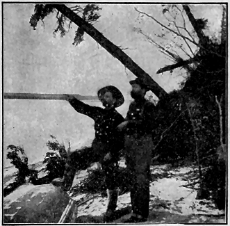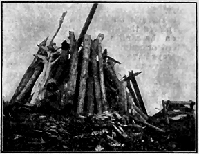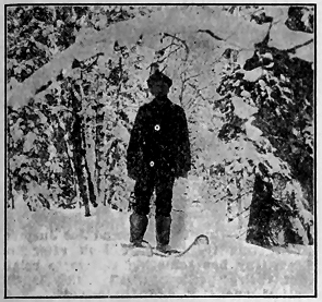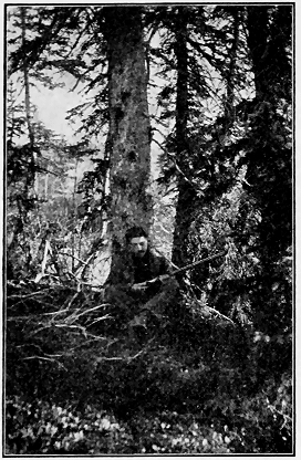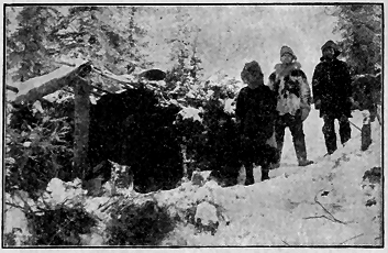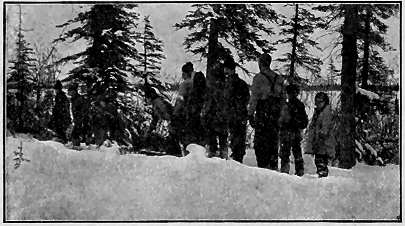 The Hanson boys came near getting me into serious trouble yesterday. It was one of Joe Jury's jokes. When I left his cabin I started back into the woods. Nolan, of the Sunnyside, called in. Joe told him that I had reported seeing two caribou across the river on the way down. Joe garnished the tale with a few extra details, and Nolan left for Sunnyside pretty well excited. He got nearly everyone in camp out before noon. I happened along on their trail about four o'clock, and the first fellow I met was Nolan, just returning from a long tramp. He informed me that he had seen the caribou tracks (?) and wanted to know where I had last seen the animals. I was taken by surprise and told him that I hadn't seen a [ 76 ] caribou in Alaska. It then dawned on Nolan that he had been the victim of a joke, and he was somewhat "beside himself." I tried to explain matters by telling him that I had said to Joe Jury something about having seen "ptarmigan." which no doubt he had taken for "caribou." The rest of the fellows took the joke all right, but said they would "get even" with Joe some way. One man fired his rifle at a target and split the barrel over two-thirds its length, owing to snow in the end, I suppose. The gun was ruined and so the joke was a costly one.