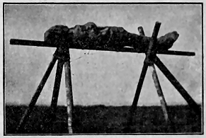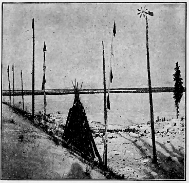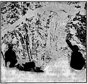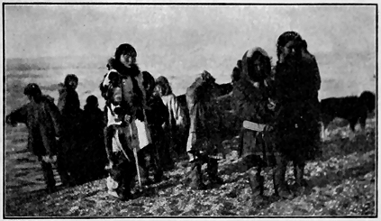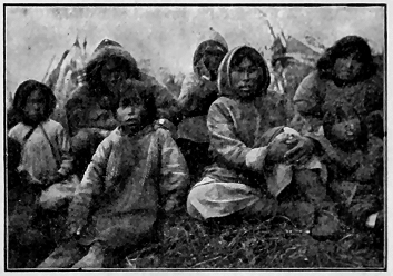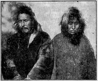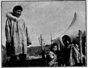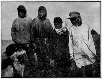We have just learned of a superstition which is the most cruel of any noted among these strange people. It has roused our civilized horror. A very pretty little girl about thirteen years old, who has been the pet of the camps all winter, and whom the boys have looked upon as a "little sister," has been shut up all by herself in a small snow cave back in the woods. There she is doomed to stay until the snow melts, without speaking to anyone or leaving her cramped position, with no fire and with only such cold food as may be brought to her. And she must live alone in such an igloo for one year, so their statutes decree. This is the law concerning all Kowak-mitt women when they are supposed to have reached marriageable age.