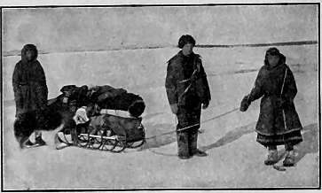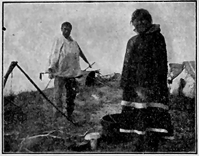 There is a string telephone between two cabins at Sunnyside which is a real novelty. The box resonators in each cabin are fixed up with features like a human face with a tin mouth. It was exceedingly funny to see the expression on the faces of the natives when they first heard that box "talk." Greenberg was talking in at the other end, and they recognized his voice. One old woman fled in terror. She thought it was a "doonak" (evil spirit). It is no wonder these things frighten the Eskimos so. Doubtless our own ancestors would have been burned at the stake by their townspeople for witchcraft in the early days of New England had they dared to make a tin box "talk."