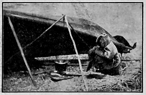The season is earlier than usual, and the weather much more disagreeable than at the [ 96 ] same date last year on the Kowak. Every moment or two while I write I have to stop and stir the beans or apple sauce, or look at a batch of bread. The beans are boiling with rather a melodious gurgle, while the sizzling rice and the patter of sleet on the canvas overhead furnish a rather pleasing accompaniment. But it makes a person feel kind of lonesome-like. There! the old stove is smoking again! Whenever the wind shifts around the hill the draft is damaged, and the stinging, irritating green willow smoke fills the tent. My eyes smart and are very painful from this cause. I long for the voyage home across the water for the sake of my eyes. And now the snow is coming and it will but increase the mischief. I should hate to lose my good eyesight.
