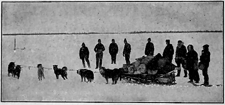 I bought eighteen pounds of No. 8 shot for $1.20 at the Hanson Camp. It took me nearly three hours to bring it three miles against the wind. I had no snowshoes, as I had let Brownie have mine when he started for the schooner. The extra weight was just enough to make me break through the crust every five steps, and down I went to my knees. That eighteen pounds grew to one hundred pounds before I reached home.