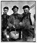 The boys are having no easy job at shoveling. Their feet are swollen and sore from standing in rubber boots in ice water, and their hands are cracked and chapped. These every-day monotonies are the real hardships of a miner's life. He can tramp across the country for a few weeks and know that the end of his journey is at hand, and besides be getting some satisfaction from the thought of "glory" when he shall relate his perils to gaping friends at home. But this "peg-away" daily toil, in heat and cold and sleet and rain, after what may come to light in the next shovelful, and possibly never show up at all—this is hardship. But through it all the boys who have stuck to their work are in good spirits, and this in face of the fact that the "clean-ups" do not always show up wages even.