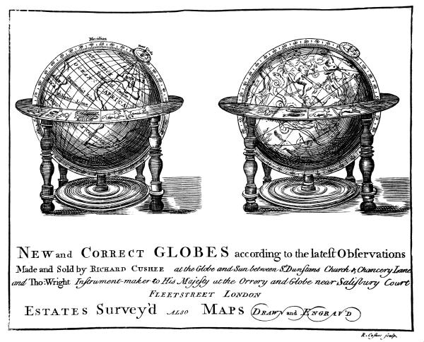 Printed for B. Cole, at the Orrery, near the Globe Tavern, in Fleet street, late the Shop of Mr. Thomas Wright, Instrument-maker to his late Majesty; and E. Cushee, near St. Dunstan’s Church, Fleet Street.