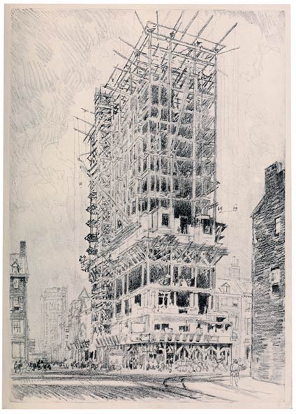 I can remember the bed of mortar in the street, the hod-carrier toiling up the ladder, the bricklayers above on the scaffold, and I have drawn such things; but to find during one's lifetime such a development of building in my own city is amazing, but it is well worth recording—this phase of the Wonder of Work.