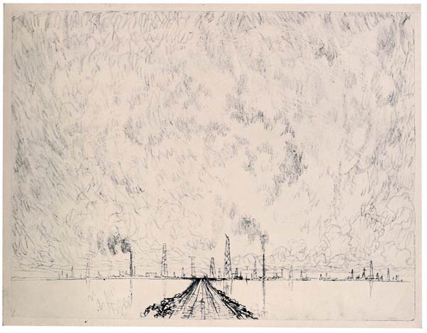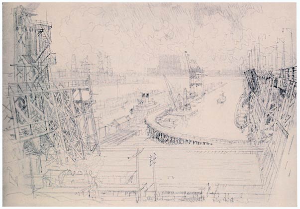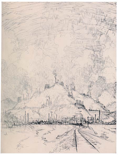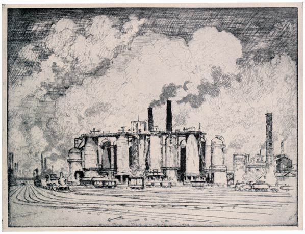 If there is anything in carrying on tradition it is here, for here at these new works, the engineers, the steel makers, have built mills which are nothing more than Rembrandt's mills glorified and magnified. And everything in the Wonder of Work is only carrying on tradition. Every mill, every dock, every railroad station, every bridge, every skyscraper is but a development of the work of the Greeks and Romans. In trying to show this Wonder of Work to-day I am only trying to do what has been done already with Greek art and literature. We are not original and never can be. We may believe we are and prove ourselves ignorant or cubists, but the cubists are so ignorant—or think the public are—that they only prig from archaic art. We can carry on tradition with difficulty; we can easily turn backward or stand still. Those who have created the Wonder of Work do not turn back—artists do not—duffers do.
