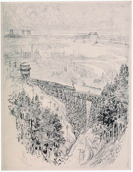 A few years ago it would have been impossible to have done, or even found, the subjects in this book, for one would have had an impossible tramp, or a trip in a hack, and the nuisance and expense of it all, while the roads rarely went near the mills or works. Now the trolley whisks you about, and frequently deserts the roads to get to the mills and pick up its passengers, the workmen. The trolley is by far the best guide to the Wonder of Work in the world. I had no idea what was at Bessemer—or rather on the way to it. I had been in the works, but as the car mounted the hill I saw the subject behind me, and at the next stop jumped off and drew it, and it is in this way my work has been done. It's all adventure—the adventure of hunting for the Wonder of Work, and the love of the hunt has carried me all over Europe and America.