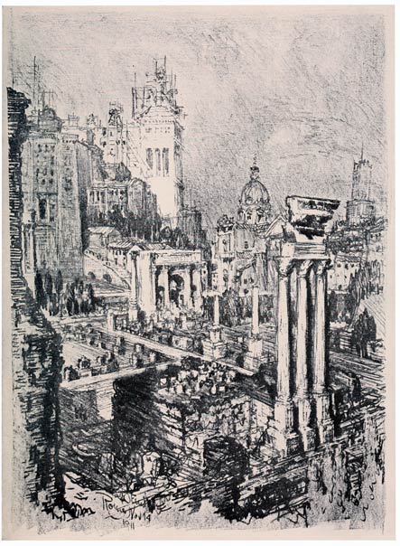 A triumph of misdirected work which has swallowed millions with no result—only while it was being built, the scaffolding which surrounded it was magnificent, and from where I made the drawing on the Palatine it told the story of ancient, mediæval, and modern work in Rome.