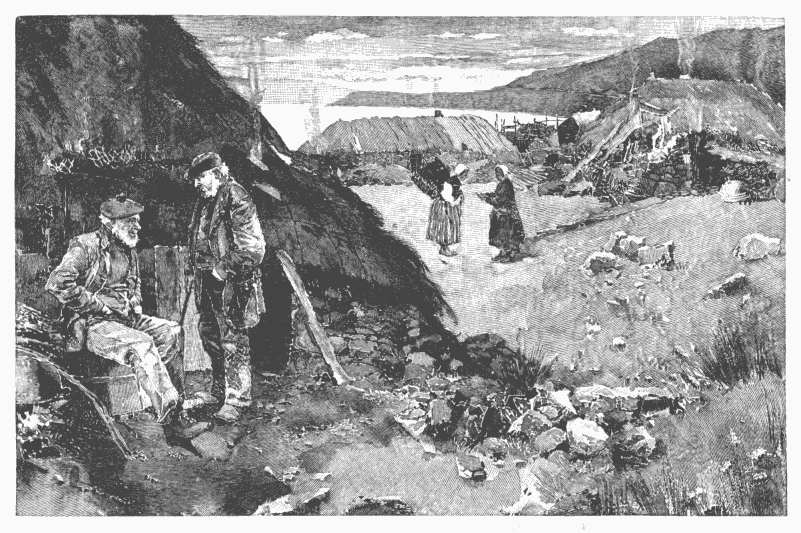 "From here a drive of about four miles brought the visitors to Arebruich—a township fixed in a spot which was surely never intended for human beings. As one passes onwards from Balallan, the soil gradually sinks lower and lower on the north side of the loch until, when Arebruich is reached, it is almost level to the water's edge. The result is that the[xii] land is literally a floating bog, and it is a miracle how the poor people, who labour away at the barren scraps of earth which show some signs of cultivation, manage to get any food raised out of them. A rude, clayish pathway extends for some little distance from the main road, but it soon stops, as if the builders had thrown up the work in disgust. There are sixteen crofts, such as they are, in the township, and these are occupied by twenty-six families. The first house visited was that of John Mackinnon, a stout, good-looking man in spite of his surroundings. He lives on his mother's lot, which is rented at £2.15s., exclusive of taxes. His mother, who is eighty years old, lives, along with an unmarried daughter, in an adjoining house. He paid 35s. two years ago to the factor, but since then he has been able to pay nothing. He fished as a hired man last year at Lybster; but his earnings were so small that when his season's board was paid he had only 9d. left. A friend had to lend him his passage-money. At present he has three barrels of potatoes left, but neither meal nor money. He has two of a family, besides himself and wife. They have to live on potatoes. His mother never got any parochial relief, and she and her daughter have to struggle along as best they can. He has one cow and eight sheep. When the destitution meal was being distributed he got three stones, and his mother an equal quantity. He does not know what to do, and has no prospects whatever. The next house presented a worse case. It was that of Widow Murdo Macleod, a sister of Mackinnon. She said her husband was drowned at Loch Seaforth seven years ago, when they were only ten months married. She had one daughter, who was born shortly after her husband was drowned. She has made her living all these years by knitting and sewing and odd jobs, but never got any help from the Parochial Board, though she applied several times. She has neither land nor stock, and never had any. She generally gets a few potatoes from her brother at harvest time. She has half a barrel on hand at present, and about a stone of meal, the remains of what was got from the destitution fund. She always tried to be industrious, and therefore was never actually in absolute want. She always enjoyed good health, and felt very thankful for it. The hut in which this woman and her daughter[xiii] live is wretchedly poor, and the single bed is barely covered with a thin blanket."[A]