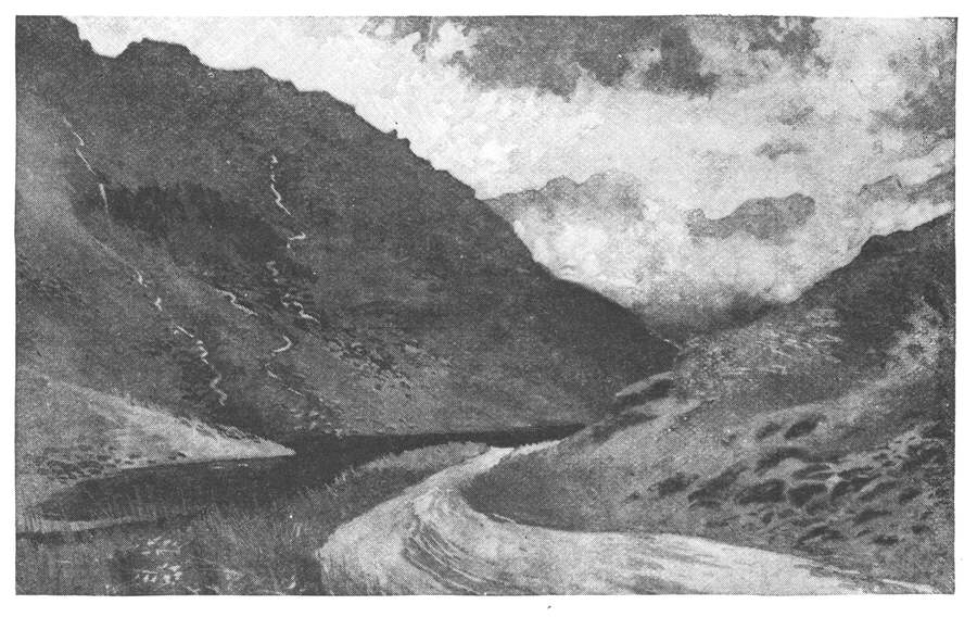 In this lonely place a little loch lies dark and peaceful among the hills. Restil, its name is; I do not know what it means, but it has a pretty sound. Nothing could be more monotonous to tramp over than the long stretch of road which follows Kinglas Water almost to the shores of Loch Fyne. Our feet were blistered, and now ached at every step. Our shoulders were sorely strained. The things we said are best not written. When the coach from Inverary passed and until it was out of sight, we made a feint of not being tired. But the rest of the way we now grew eloquent in abuse, now limped in gloomy silence.[19]