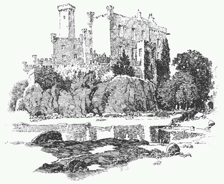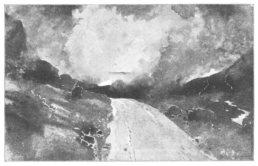 We were off by eight in the morning. It was clear and cool, like an October day at home. Our road lay for a while close to the loch, then turned and went round the parks and lawns that sloped gently to the shore, so that it was only over a stone wall or through a gap in the hedge we could see the blue water and the wooded islands. We were now on the fighting-ground of the Colquhoun and the MacGregor, we learned from Black, who—we know it to our cost—is a better guide to the romance and history of Scotland than to its roads. It is but poor comfort when you ask for a good route to be given a quotation.