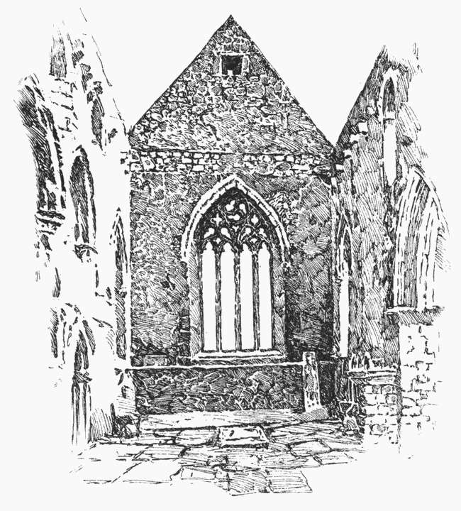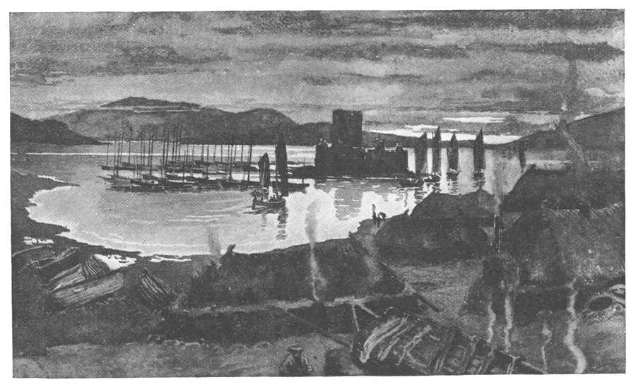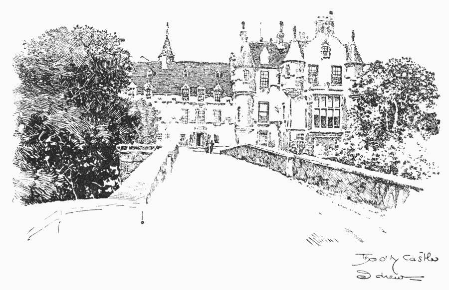 Here we made up our minds to go to Dalmally by coach. It was much too hot to walk. This left us free to take a nearer look at the castle, which, when we saw how painfully it had been restored, we thought less fine. In the town itself, though there is plenty sketchable, there is nothing notable, save the old town-cross, with its weather-worn carvings, which stands upon the shore, with loch and hills for background.
