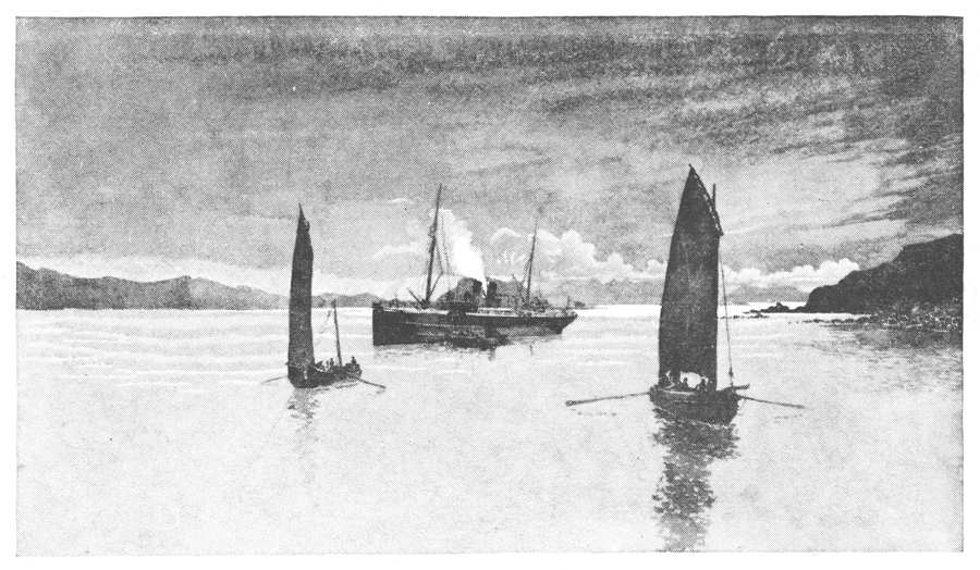 It was in the morning that the landlady showed her canniness. She sent us off in her boat to be[22] rowed across the loch; this, she said, we should find the shorter way to Inverary. But on the water one of the boys let slip the truth. We should have half the distance to walk if we went straight from Cairndow to St. Catharine's, there to cross by the steam ferry. Judge of our righteous wrath! When they rowed us back to the Cairndow side, the boys were careful to land us a good quarter of a mile below the inn. The worst of it was that once on shore again, we did not know whom to believe, the mother or the children. We were in a fine state of doubt, until a woman in the first cottage we came to reassured us. This was by far the shorter way, and we need not hurry, she added; we could not help reaching St. Catharine's in time for the ferry at eleven.